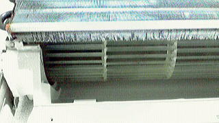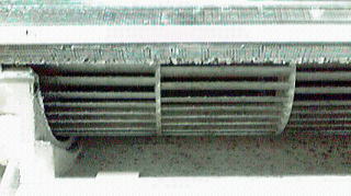 大半のメーカーのエアコンは、この羽の色が黒色なのですが、サンヨーと三菱重工の一部製品だけがスケルトンタイプです。