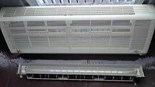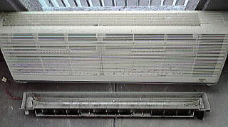 1台は三菱重工製で、もう1台はサンヨー製でしたが、2台共にシロッコファン(送風ファン)の羽の色が半透明のスケルトンタイプでした。